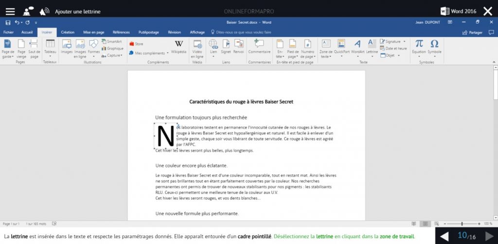 Symboles, caractères spéciaux, lettrinesInsérer un symbole ou un caractère spécial